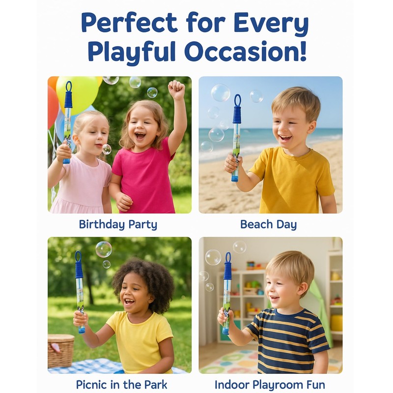 - 🧒 Child-Friendly & Easy to Use – The large wand design makes it simple for kids aged 3+ to enjoy hours of bubble-blowing fun indoors or outdoors.