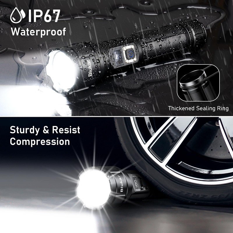 Blukar Blukar Taschenlampe LED Aufladbar, 500000 Lumen Extrem Hell Taschenlampen Zoombare Taktische Handlampe mit 5 Lichtmodi, IP67 Wasserdicht Flashlight Torch fr Camping, Outdoor, Notf?ll