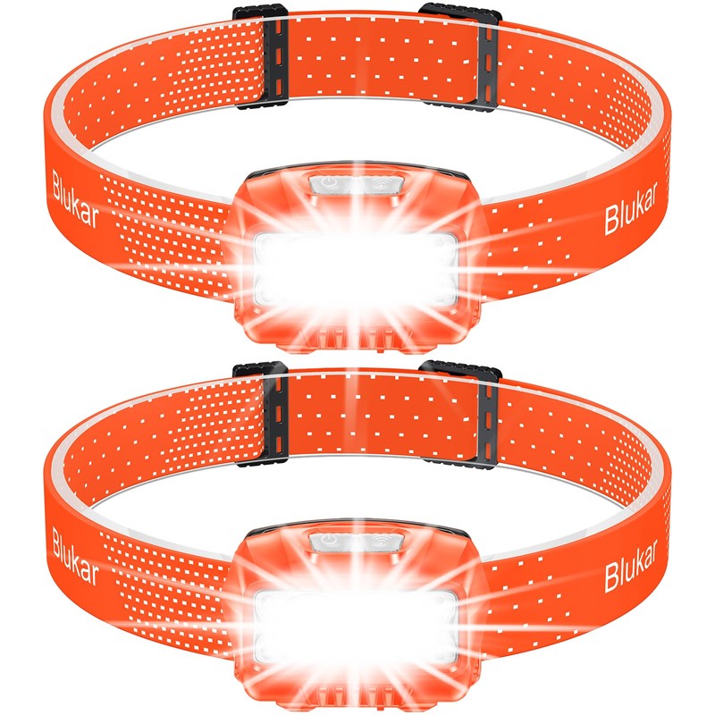Blukar Headlamp Flashlight, 2-Pack Super Bright LED Rechargeable Headlight - Spotlight&Floodlight Combination,Sensor Control, 8 Modes,IPX5 Waterproof, 20+Hrs Runtime for Camping-Orange