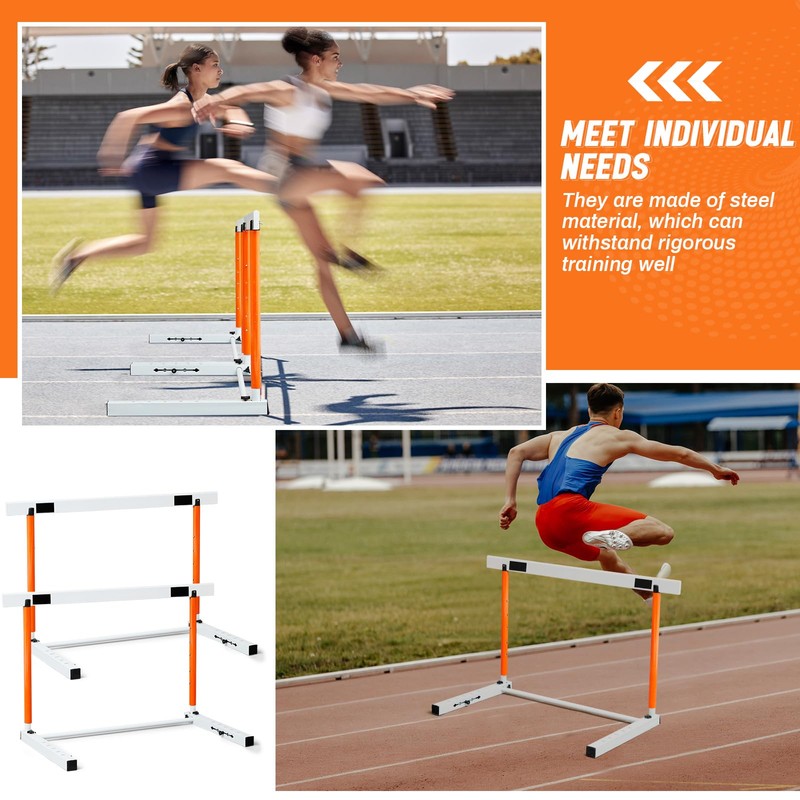 - Steel Material: hurdles challenge all athletes to maintain a high level of balance, special awareness and coordination; They are made of steel material, which can withstand rigorous training well; Landing easily after collision ensures that runners are not injured