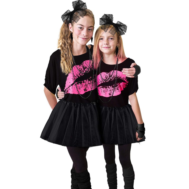 Blulu Blulu 80 Jahre Kostüm Zubehör Set, T-Shirt Tutu Stirnband Ohrring Halskette Beinlinge(XXXL,Schwarz)