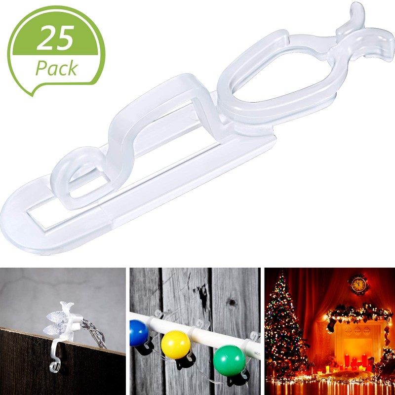 - What you get: you'll get a pack of 25 Christmas light clips, enough quantity to serve as nice lamp holders for Christmas outdoor lighting decoration