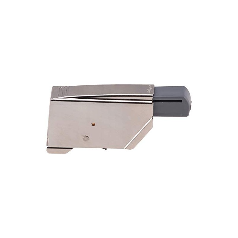 This clip-on mechanism will provide a soft-closing feature to your cabinet doors. It attaches to a Blum Euro hinge and offers a silent and soft close every time the cabinet is closed. It is made of nickel-plated steel and gray nylon.