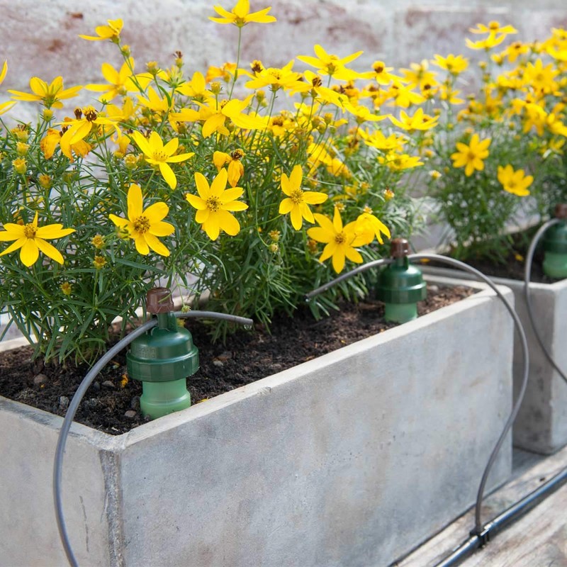 - DISCRETE - Gray-brown color blends in easily with soil and planters--no need for unsightly tubing!