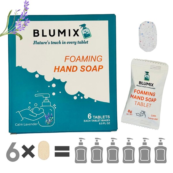 Blumix - Foaming Hand Soap Tablet Refill - 6 Pack - Gentle Cleansing Foaming Tablets, Zero Plastic Waste, Effective Cleaning, Just-Add-Water (Lavender)