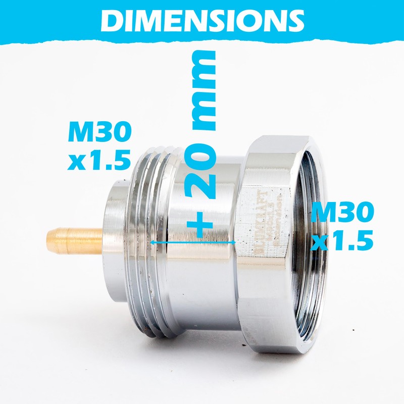 BLUMKRAFT extension 20 mm for thermostatic valve M30 x 1.5 compatible with Oventrop Unibox M30 x 1.5 internal thread/external thread: extends your thermostatic valve by 20 mm (2 cm).