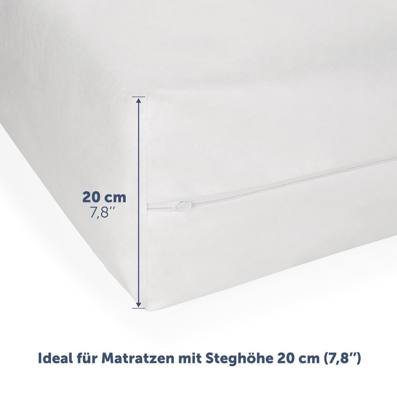 - OHNE KNISTERN - IDEAL FÜR STEGHÖHE 30 CM: Ideale Passform nach dem ersten Waschen - optimal für Matratzen mit 30 cm Höhe. Der Allergie Matratzenschoner knistert nicht.