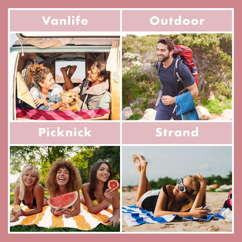 - Sand-repellent: thanks to the fine weave and the fabric texture, the XXL beach towel is sand-resistant and can be easily shaken out. You can use it comfortably as a beach blanket and as a towel quick-drying