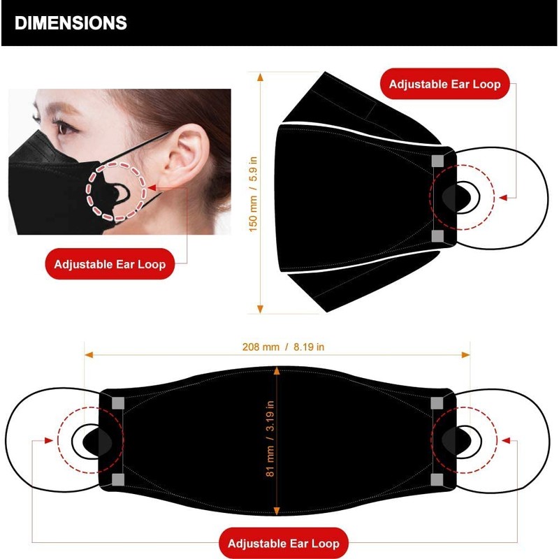 - [COMFORTABLE DESIGN] Adjustable ear loop design with soft/lightweight lint-free material and 3D structure fits ergonomically around the contours of your face giving you a comfortable feel and excellent breath-ability while wearing all day.