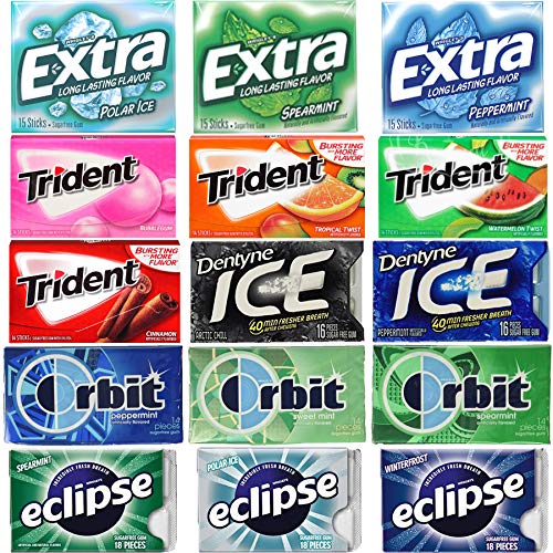 Sugar Free Gum Variety Pack Chewing Gum Including Trident, Orbit, Extra, Eclipse and Dentyne Sugarfree Chewing Gum (15 Packs)