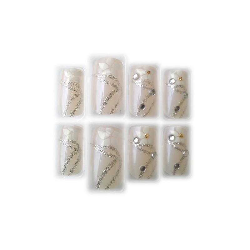 Blush Nude & White Flower w/Rhinestones Glue/Stick/Press-On Fake/Artificial/F...