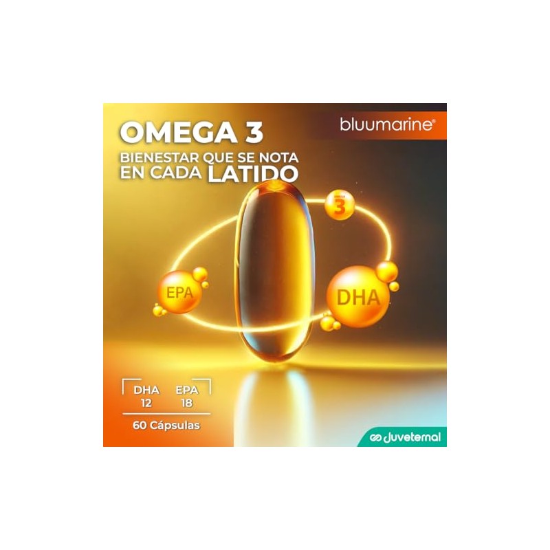 BLUUMARINE Omega 3 con 18 EPA y 12 DHA, Suplemento Alimenticio, 60 cpsulas, Apoyo Cardiovascular, Cerebral y Ocular
