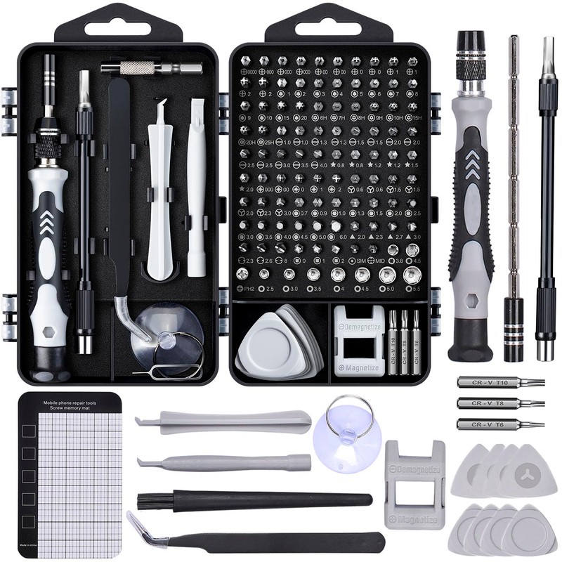 - Powerful Function: 122 in 1 precision screwdriver set contains 101 screwdriver bits and 21 auxiliary tools such as handle, flexible shafts, extensions rod, magnetiser, magnetic pad, cleaning brushes, and more. This kit is convenient for you to replace mobile phone batteries, upgrade computer and laptop accessories, disassemble and repair PS4, XBOX, and other game consoles at home—a great gift choice for hobbyists and professionals.