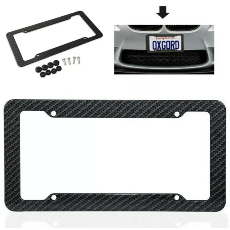Black Car Carbon Fiber License Plate Frame Cover Front / Rear Universal USA Size.