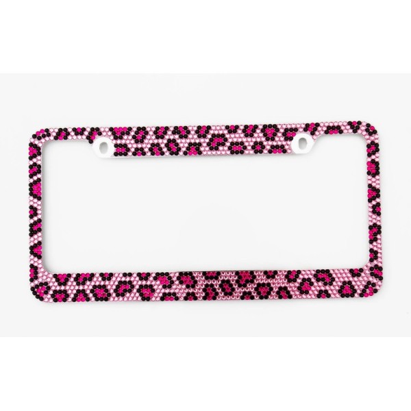 BLVD Crystal Pink Leopard Cheetah Diamond Bling Rhinestone Metal License Plate Frame