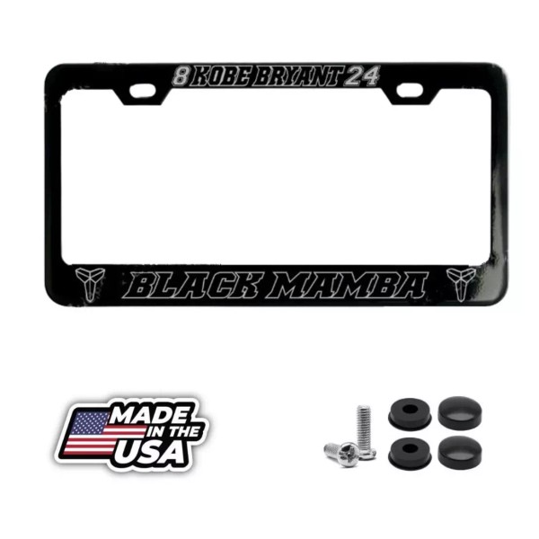 BLVD Kobe Bryant 8 24 Black Mamba Black License Plate Frame Silver Logo