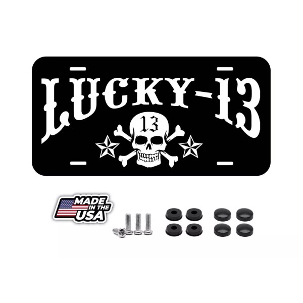 BLVD Lucky 13 Black Aluminum Novelty Tag Car License Plate