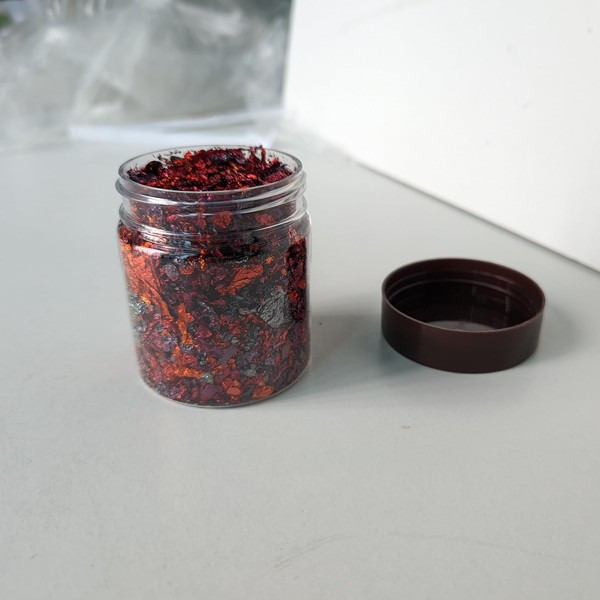 - Color specification: This is Rainbow foil, there are 100 ml shredded foil in each plastic jar, and the net weight is about 3 g.
