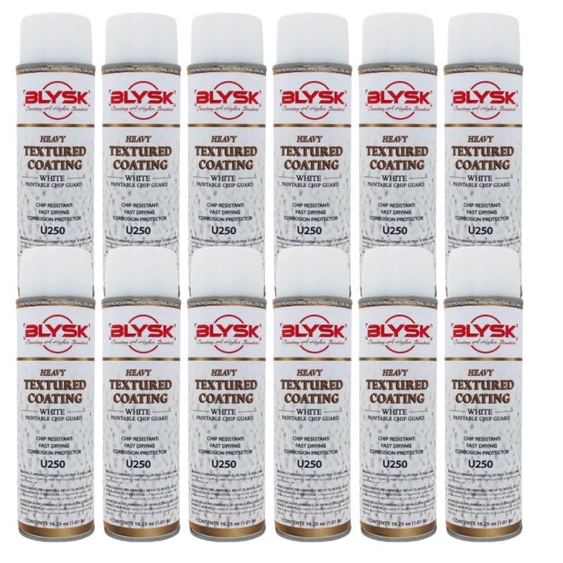 Blysk U250 Heavy-Duty Textured Coating White 15oz – Paintable Chip Guard, Fast-Drying, Corrosion-Resistant, Impact Protection (12)