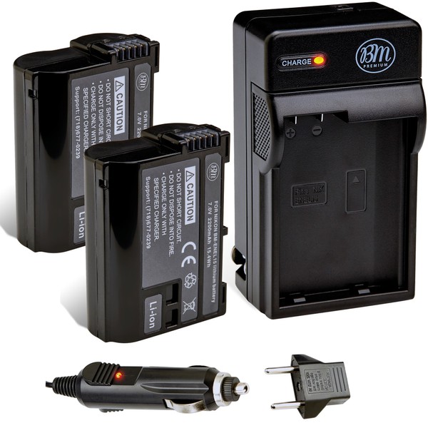 BM Premium 2-Pack of EN-EL15 Batteries and Battery Charger Kit for Nikon D850, D7500, 1 V1, D500, D600, D610, D750, D800, D810, D810A, D7000, D7100, D7200 Digital SLR Camera