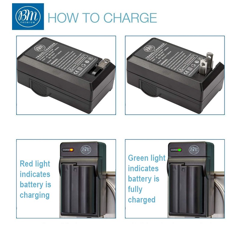 - High quality battery charger is a handy companion for digital shooting. Charger is designed with a fold-able A/C plug that charges your camcorder battery anywhere in the world. - Quick charge with automatic constant current control prevents battery from overcharging, short circuit, and electronic shock. Smart LED indicator shows charging status.