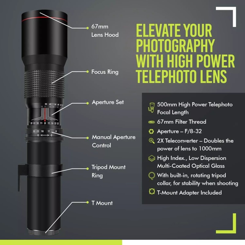 BM Premium 500mm/1000mm Lens for Olympus OM-D E-M1 E-M5 E-M10 PEN-F E-PL8 E-PL7 E-P5 E-PL5