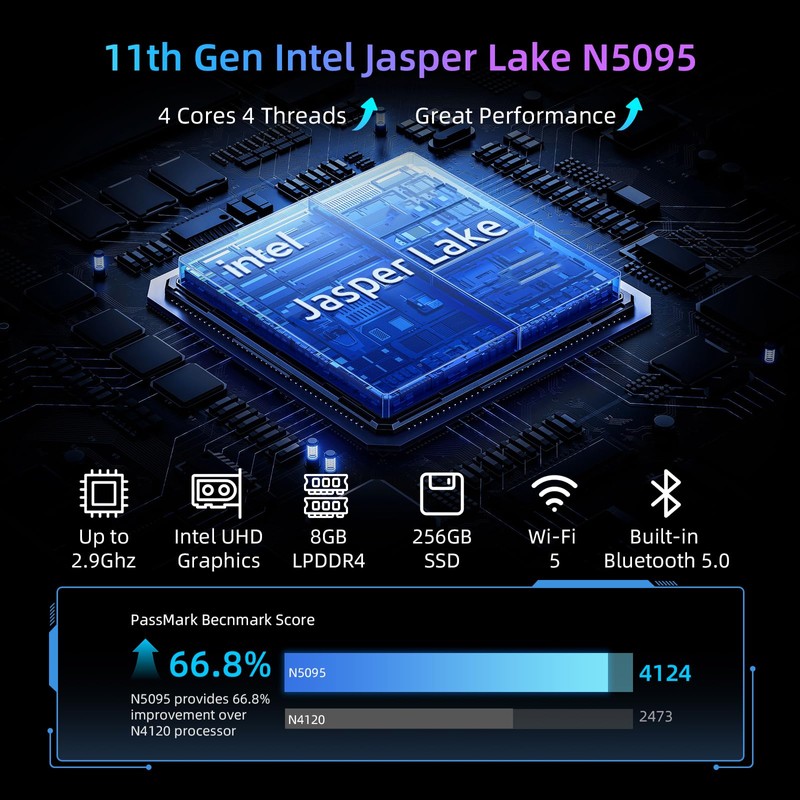 1.Powerful CPU Processor: Intel Gemini Lake N5095 (up to 2.9 GHz)