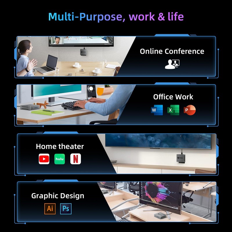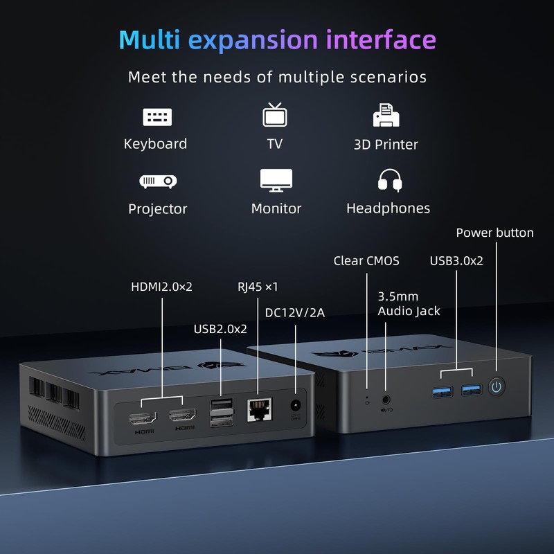 - 𝐃𝐮𝐚𝐥-𝐒𝐜𝐫𝐞𝐞𝐧 𝐃𝐢𝐬𝐩𝐥𝐚𝐲, 𝐈𝐧𝐟𝐢𝐧𝐢𝐭𝐞 𝐏𝐨𝐬𝐬𝐢𝐛𝐢𝐥𝐢𝐭𝐢𝐞𝐬: Thanks to the 11th Gen Intel UHD graphics, the Bmax B3 Pro supports dual-screen display up to 4K 60Hz, featuring USB 3.0 ×2 + USB 2.0 ×2, 3.5mm audio interface × 1, RJ45 × 1, and HDMI × 2, enabling easy connection to a variety of devices. The space-saving design includes a VESA base that attaches to the back of the monitor.