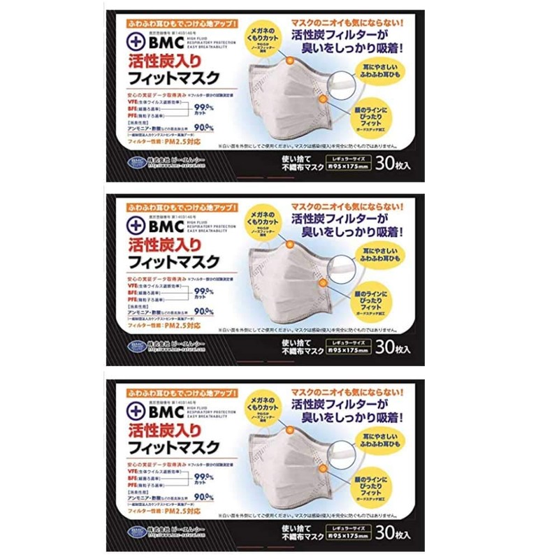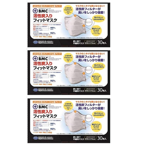 BMC Activated Carbon Fit Mask, 30 Sheets, Set of 3