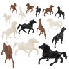From the BMC Toys CLASSIC ARMY MEN COLLECTOR SERIES, another old favorite from the golden age of plastic toys rides again. This 15 piece set of riding horses includes 5 each Black, White, and Brown horses with molded-in saddles and reins. All horses are the same pose standing 2.6 inches tall x 3.25 inches long (including tail) x6 inch wide (at saddle), and made from slightly stiff HDPE plastic with just a little flashing. These horses are hollow underneath and the inside legs are flat. Scale is approximately 1:40 (45mm) and