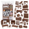 From the CLASSIC ARMY MEN COLLECTOR SERIES, BMC Toys brings back more classic toys from yesteryear. This 44 piece set includes a wide variety of furniture and accessories made from slightly stiff brown color HDPE plastic. Pieces include desks, chairs. file cabinets, waste paper baskets, communications switchboards, benches, table, bed, barrels, crates, gun crates, racks of rifles, barber chair, roll of barbed wire, PX store counters and displays, sacks of feed and flour, printing press and letter bench, and barrel with tap. Pieces included can be used to outfit the camp offices, mess hall, barracks, recreation hall, armory, workshops, PX, and armory.