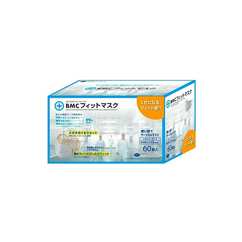 BMC Fit Masks, Disposable Surgical Masks, Regular Size, 60 Count
