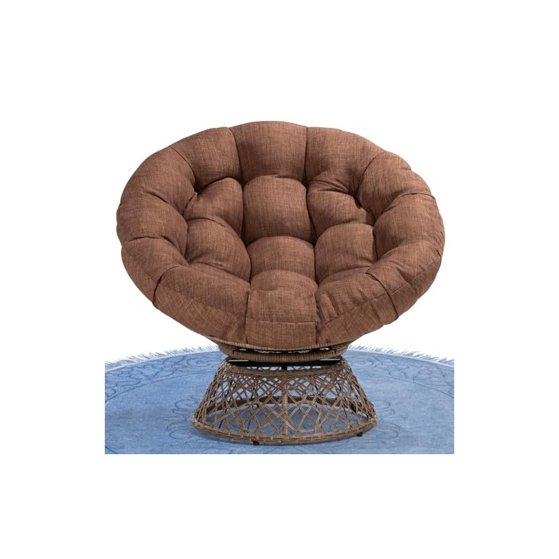 - 360 DEGREE SWIVEL PAPASAN CHAIR: The papasan chair frame is made of solid metal and expertly woven resin wicker; 360 degree swivel papasan chair base has a smoothly rotating structure without noises and friction; Five levelers protect your floor and are easily adjustable for stability of wicker papasan chair