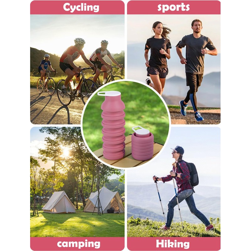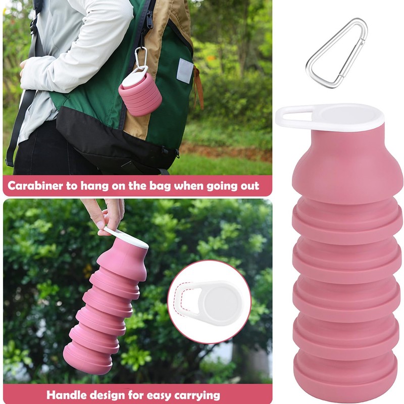 BMLFOH Collapsible Silicone Water Bottle - 20oz Foldable, Leakproof, BPA-Free - for Gym, Travel & Daily Use (Pink)