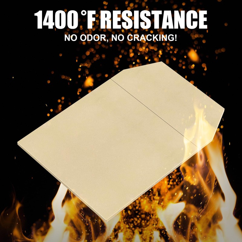 🍕Size for Roasted pizza stone: Include two pieces of pizza stones. Square pizza stone measures 17" x 17", The trapezoid measures has a top length of 11.8" and a bottom length of 17", Height of 7.7". Pizza baking stones with a thickness of 0.6". Pizza baking for oven do not have excess weight, evenly distribute heat., nor do they need to be preheated for longer like other heavier baking stones. There will be no odor or toxic substances during use.