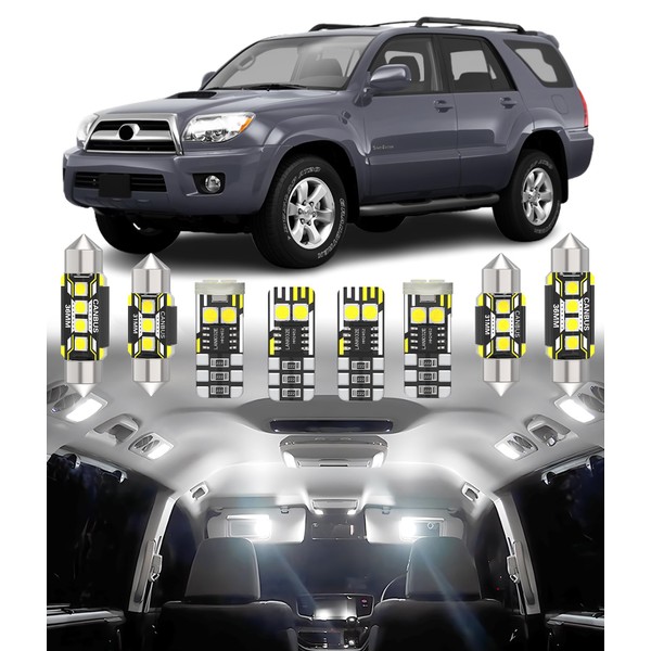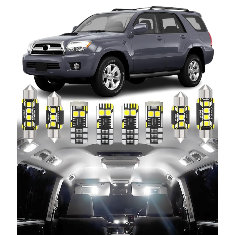- UPGRADED LED CAR KIT: Designed for seamless compatibility with over 98% of vehicles, this premium LED car bulb kit delivers a full interior lighting upgrade for Toyota 4Runner 2003 2004 2005 2006 2007 2008 2009.