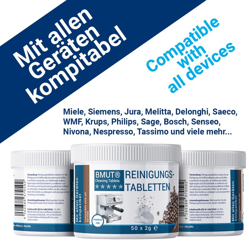 BMUT 50 x 2 g Cleaning Tablets for Fully Automatic Coffee Machines, Capsule Machines & Coffee Machines - Highly Effective Cleaning Tablets for All Manufacturers