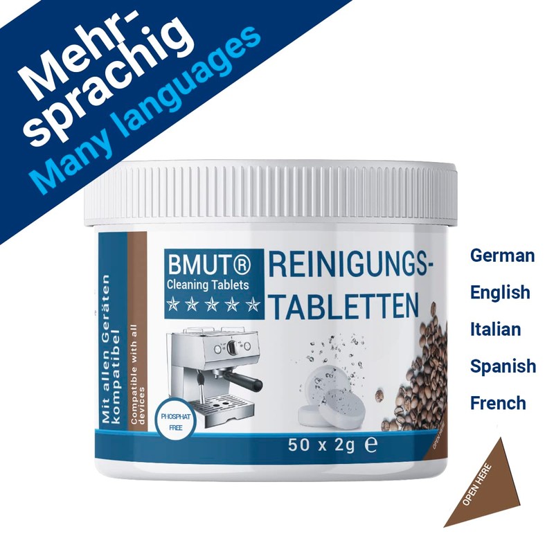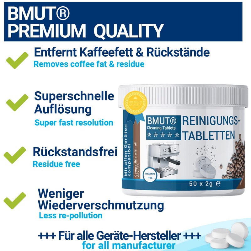BMUT 50 x 2 g Cleaning Tablets for Fully Automatic Coffee Machines, Capsule Machines & Coffee Machines - Highly Effective Cleaning Tablets for All Manufacturers