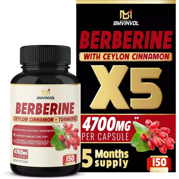 BMVINVOL Berberine Capsules 150 Count Dietary Supplement With Ceylon Cinnamon Turmeric