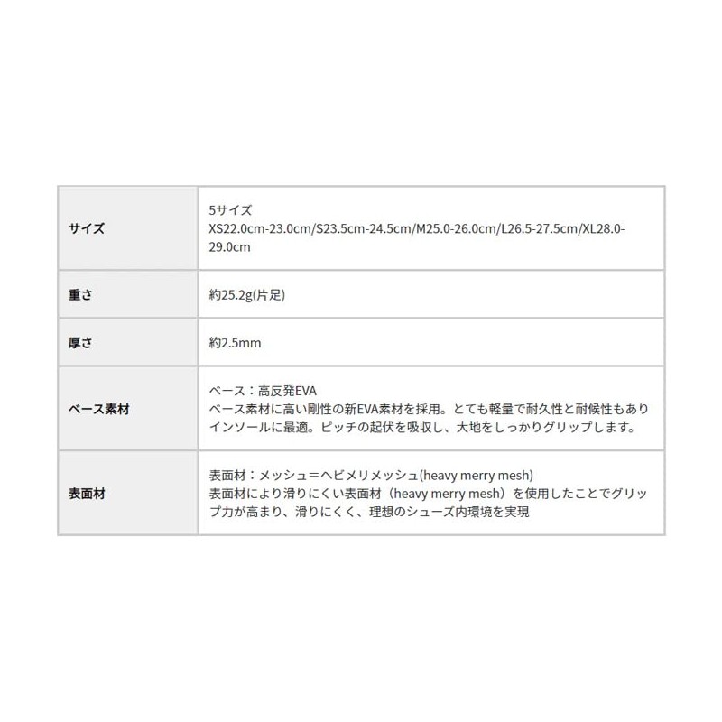 - The surface material uses a heavy merry mesh material for improved grip and anti-slip properties to achieve an ideal in-shoe environment