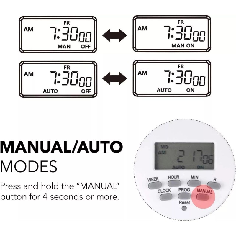 ✓ JUST SET & GO: Choose your own individual days or simply select one of the convenient pre-set combination days. Switch to Daylight Savings mode with a press of a button. Our long-lasting backup battery keeps your settings even in the event of a power outage.