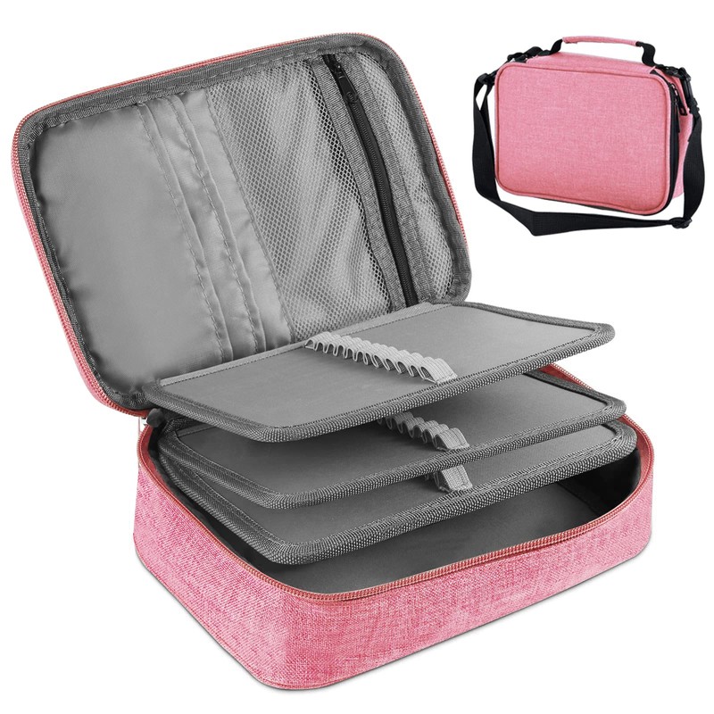 BNFU Estuche para Lapices, 72 Ranuras Lapiceras Organizadoras, Estuche para Plumones, Multifuncional Lapicero de Gran Capacidad con 2 Fundas Extraíbles, Lapicera para El Hombro Desmontable (Rosa)