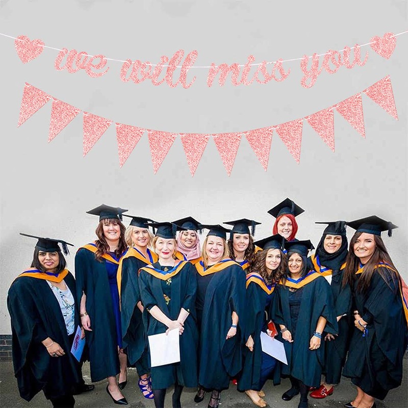 bng-bng We Will Miss You Banner Rose Gold Glitter Triangle Flag Banner Bunting for Retirement Farewell Going Away Goodbye Party Decorations Graduations Leaving Party Decorations Photo Props Backdrop
