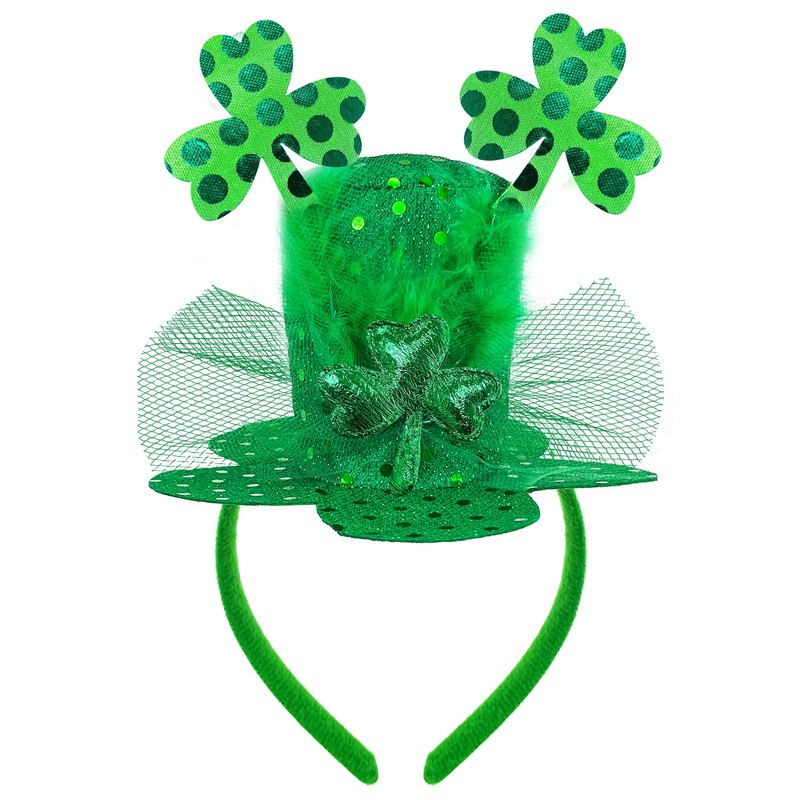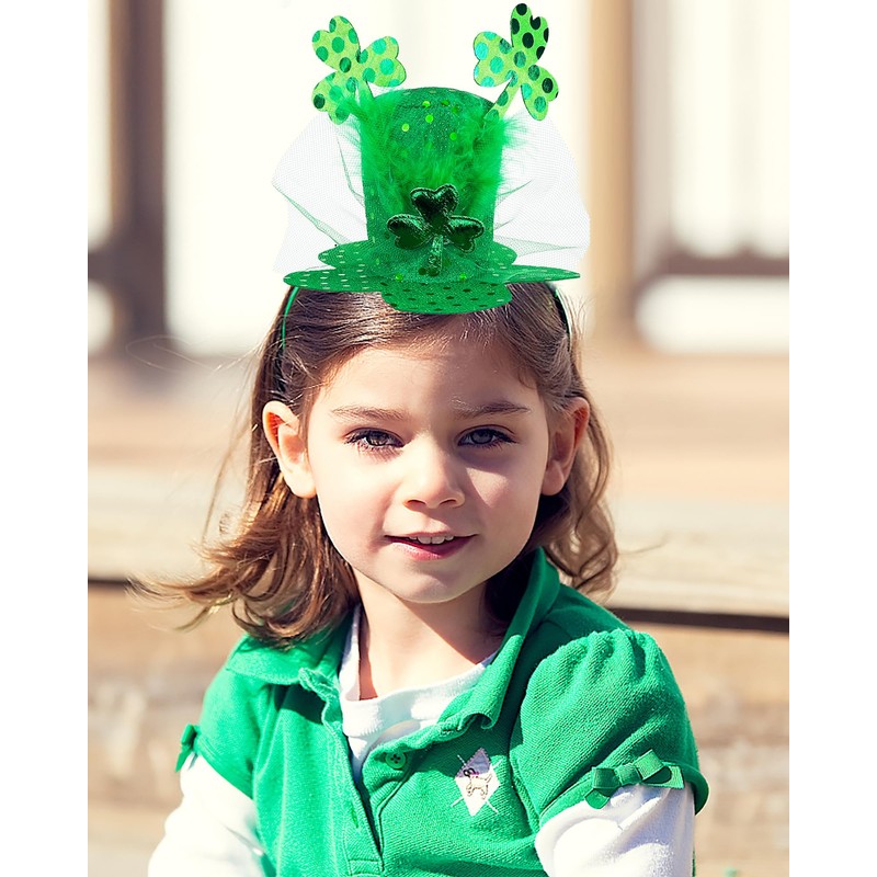 - FESTIVE DESIGN: Charming green mini top hat headband featuring glittering shamrock decorations and a delicate tulle veil for St. Patrick's Day celebrations