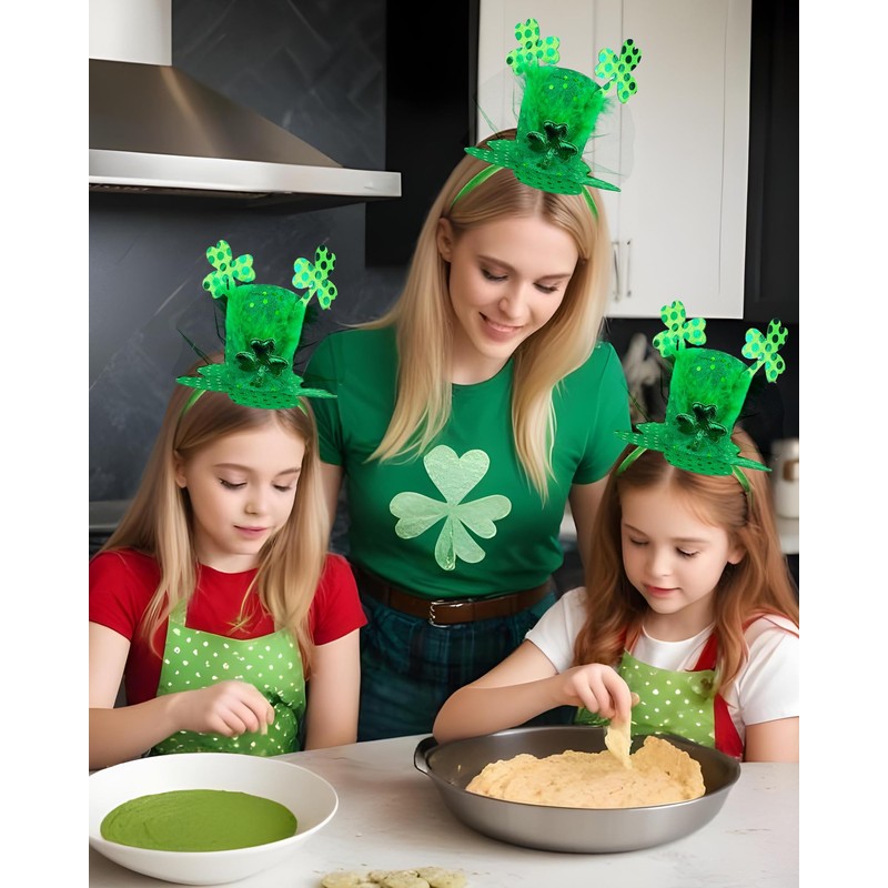 - FESTIVE DESIGN: Charming green mini top hat headband featuring glittering shamrock decorations and a delicate tulle veil for St. Patrick's Day celebrations