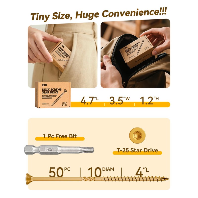 BNJ 50pcs #10 x 4 Inch Wood Screws for DIY Projects,4 inch Deck Screws,Rust Resistant Epoxy Coated Home Repair Screw Set, Heavy-Duty