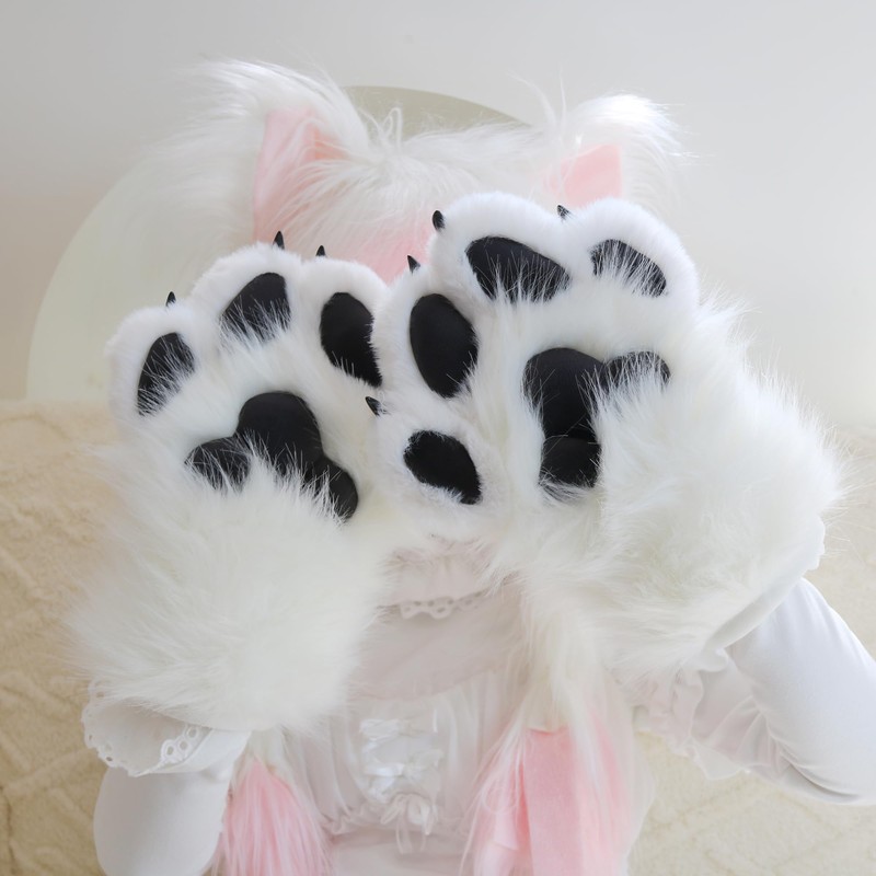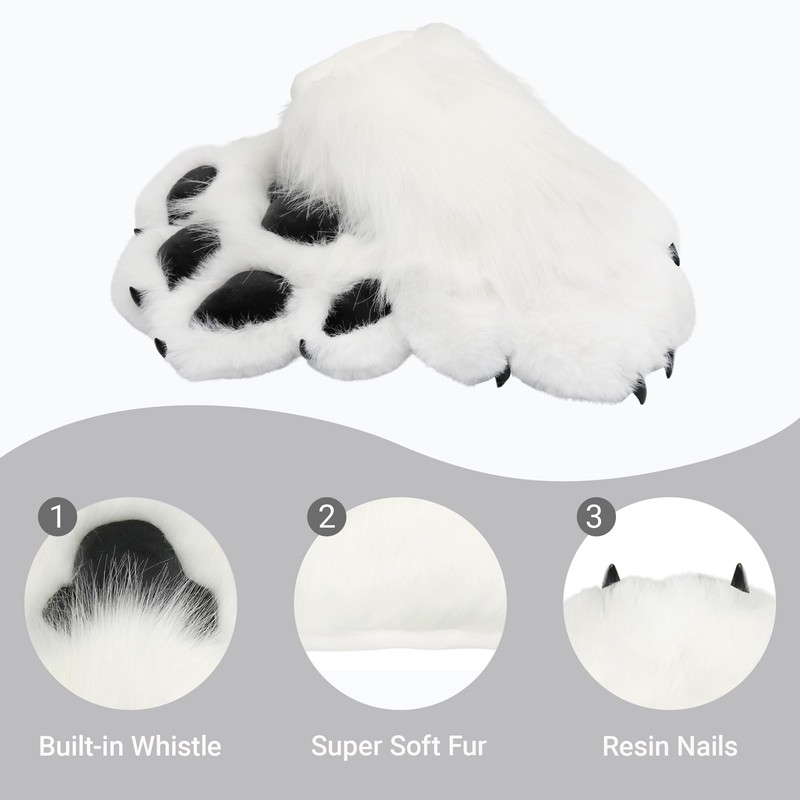 BNLIDES Cosplay Fursuit Paw Gloves Furry Claw Gloves Built-in Whistle Decompression Toys Costume Party Accessories for Adult (Bright-White)