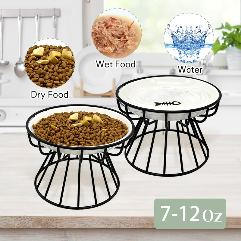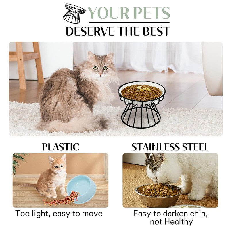 - 【Sincere Service】Ceramic cat dish is healthy for cats or pets, metal stand is not suitable for high temperature use, just wipe it down! If you have any questions or comments, please feel free to contact us!