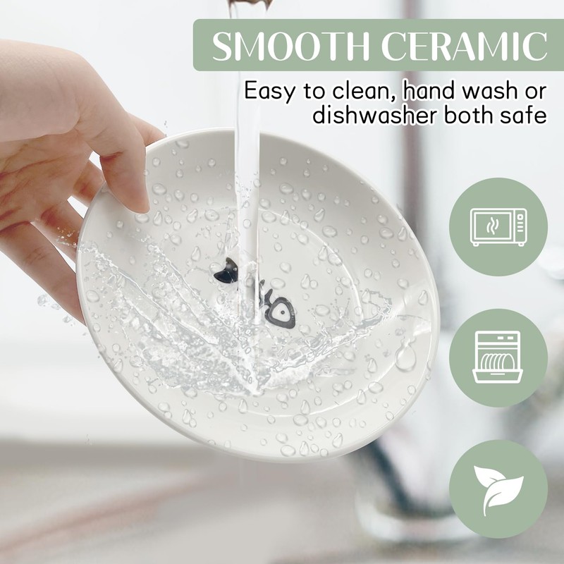 -Ceramic cat food dishes are smooth and stable, no black chin, healthier.