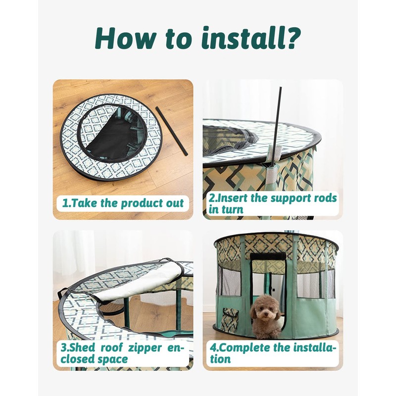 - Easy To Install: Small pet playpen with top is no need for complex splicing, automatically pops out and holds in place with support rods after a few seconds of unpacking. Folds back flat when not in use for easy carrying and storing